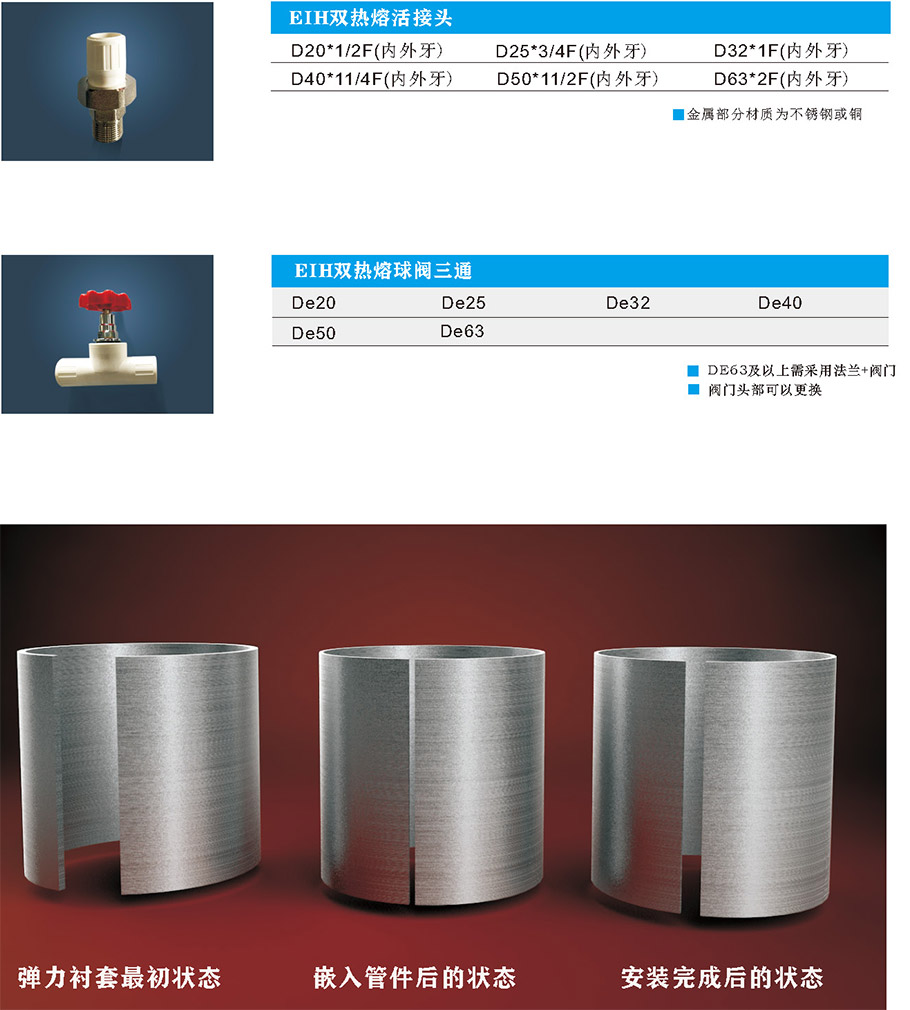 配合國恒帶彈力襯套的EIH雙熱熔管件,從原理上解決了PSP鋼塑復合壓力管 長期以來的安裝技術短板。從而令該技術真正具有廣泛且可行的適應性。
